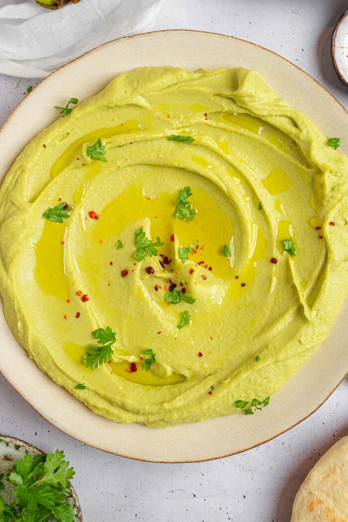 Before anyone accuses me of trying to rebrand guacamole, I want to reassure you. This avocado hummus still features the classic elements like chickpeas, garlic, and tahini. Avocado is a nice way to make your hummus creamy and beautifully green.