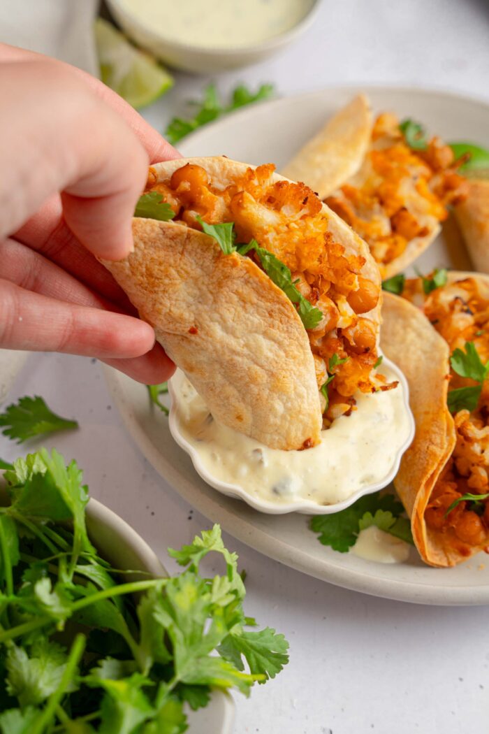- These buffalo chickpea cauliflower tacos are nicely crispy on the outside, which creates a taco you can actually bite into.