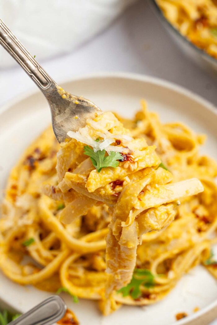 Who knew corn could pull off such a creamy, velvety pasta sauce? Best of all, there’s no dairy or dairy alternatives, which makes this recipe budget friendly and fully vegan! It takes some multitasking, but the result is definitely worth the effort.