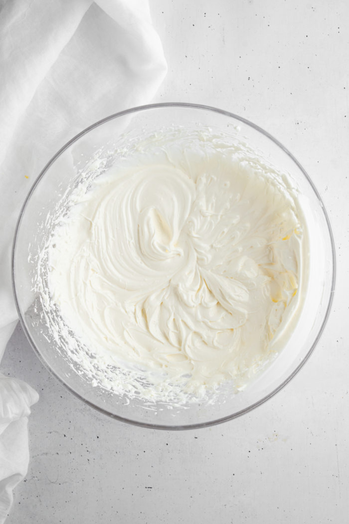 Step 2: In a medium mixing bowl, combine the vegan cream cheese, coconut whipped cream, and vanilla extract.