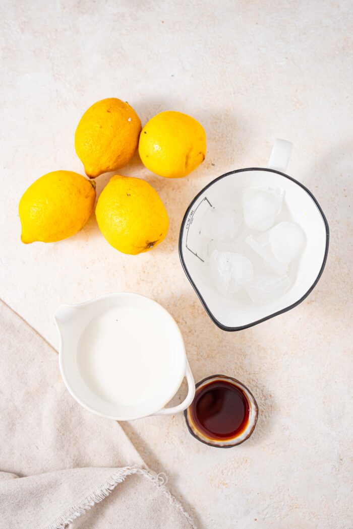 If that sounds complicated, don’t worry. The ingredient list is actually very short, and it only takes a few minutes to make this iced creamy lemonade!