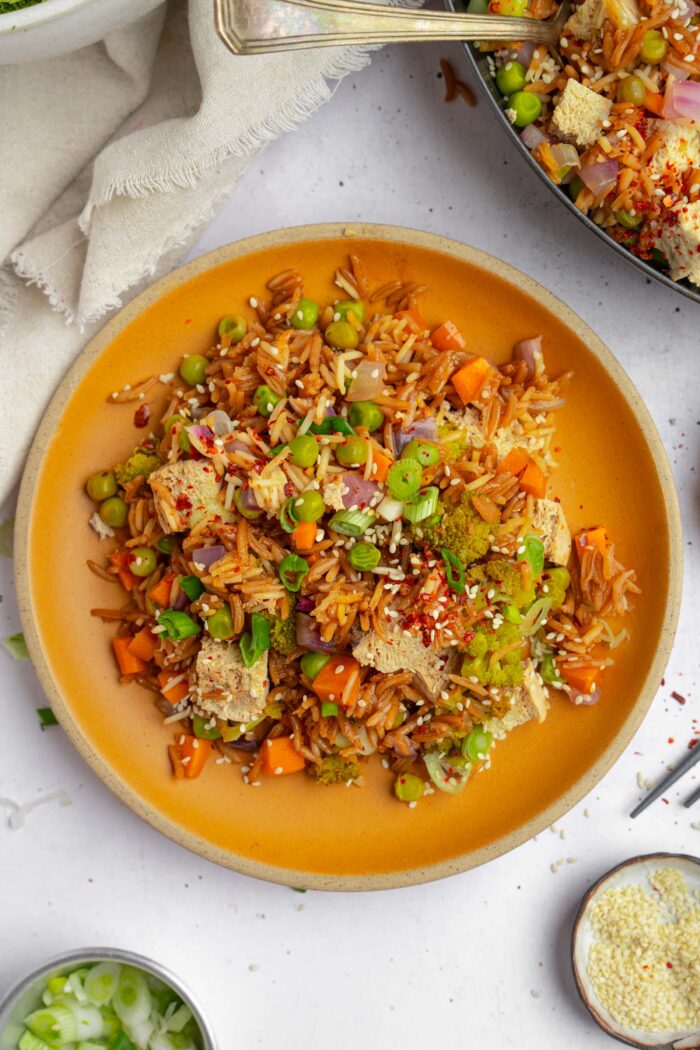 Nothing beats this comforting, colorful one pot veggie rice with smoked tofu and a flavor profile that really hits the spot. This meal tastes like it takes hours, except it cooks in less than 30 minutes.