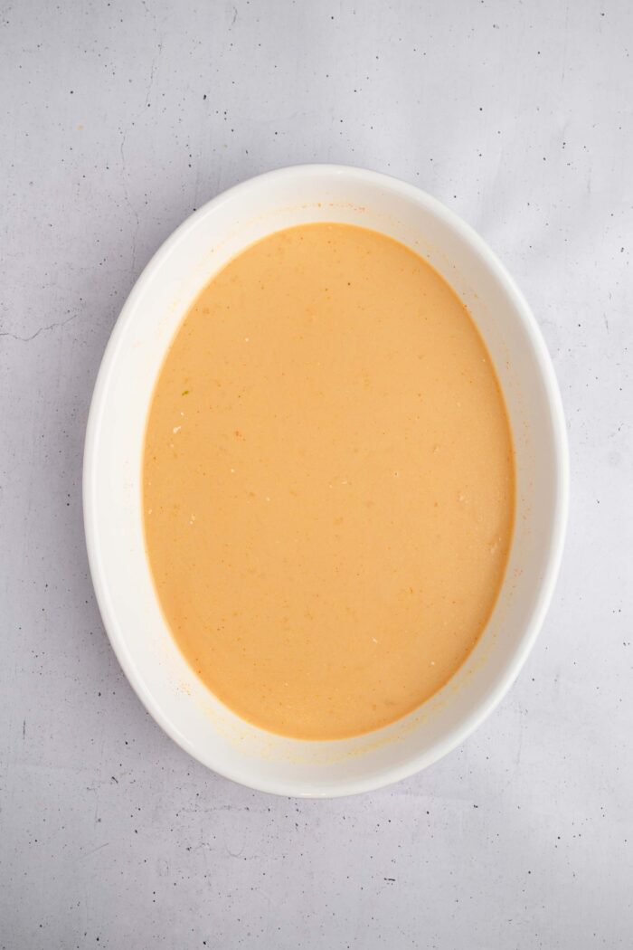- In the casserole dish, add the coconut milk, soy sauce, ginger, garlic, maple syrup, vegetable broth, paprika, lime juice and lime zest. Give it a good whisk until completely smooth.